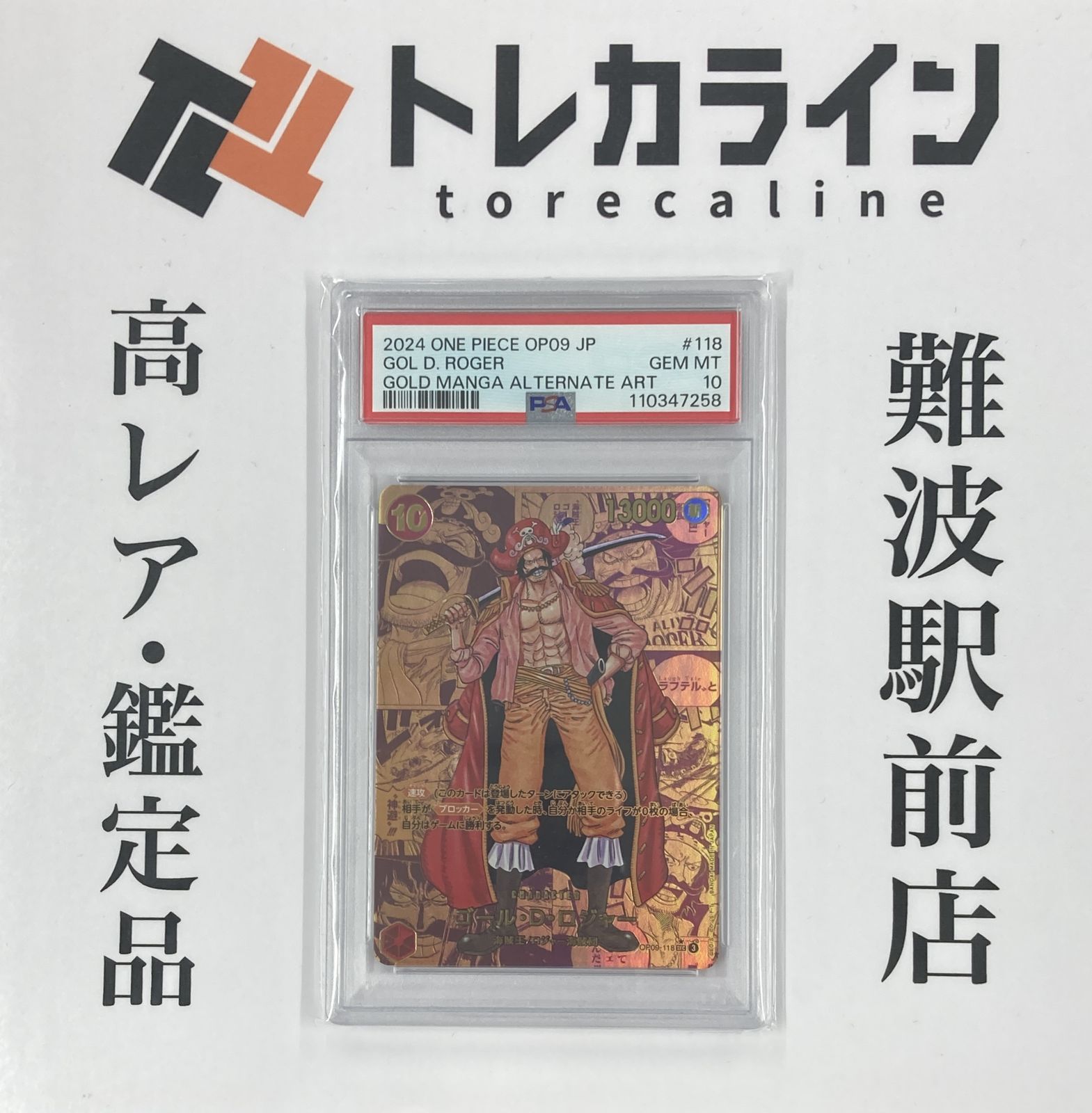 スーパーパラレル仕様(コミックパラレル)の《ゴール・D・ロジャー(OP09-118)》のPSA鑑定品(評価:GEM MINT 10)です。