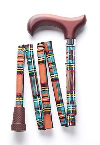 Color タータンチェック オレンジ Merry Sticks メリースティックス ブライトライフ 折りたたみステッキ 杖