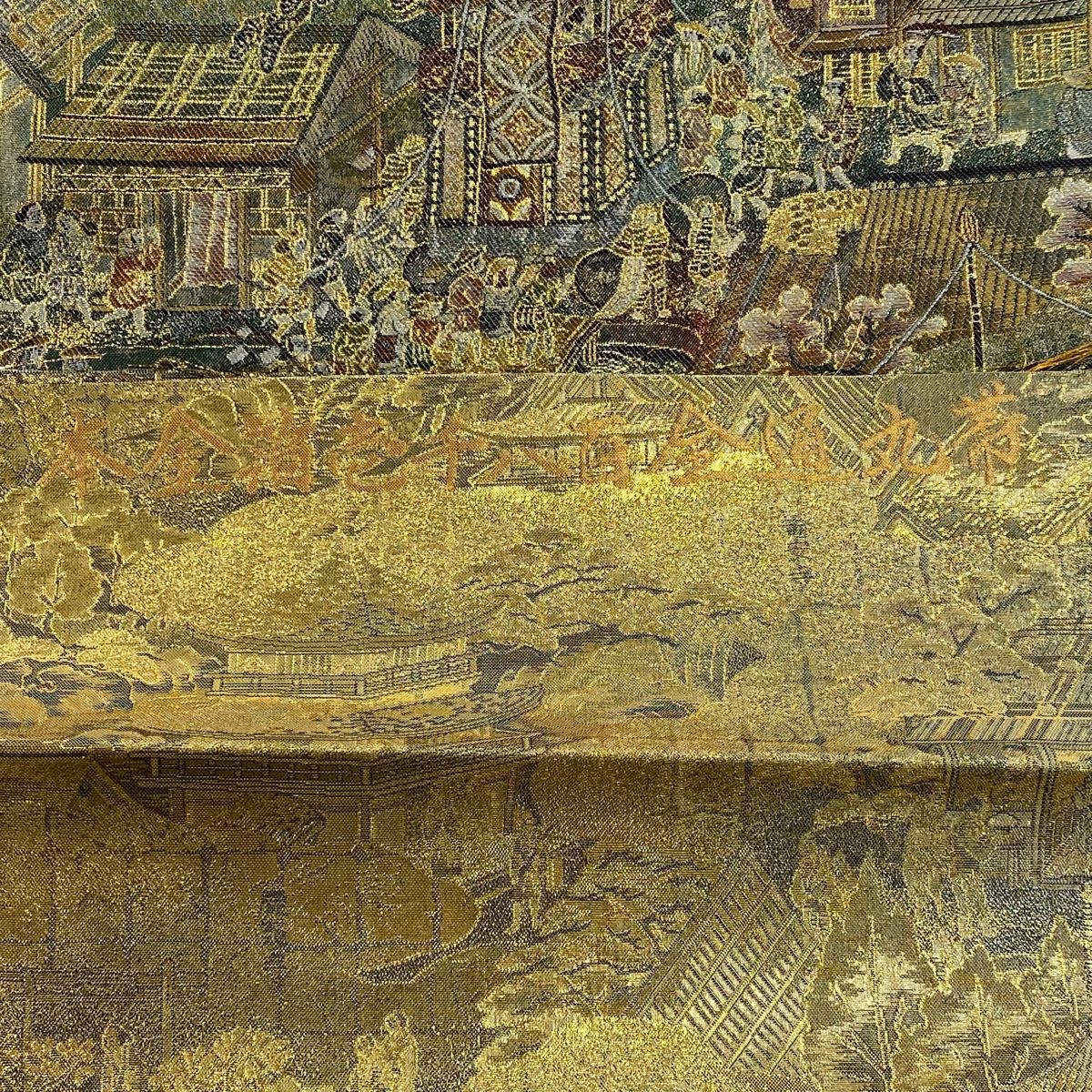 丸帯 洛中洛外祭礼之図 山鉾 本金箔 金糸 灰緑 お太鼓柄 正絹