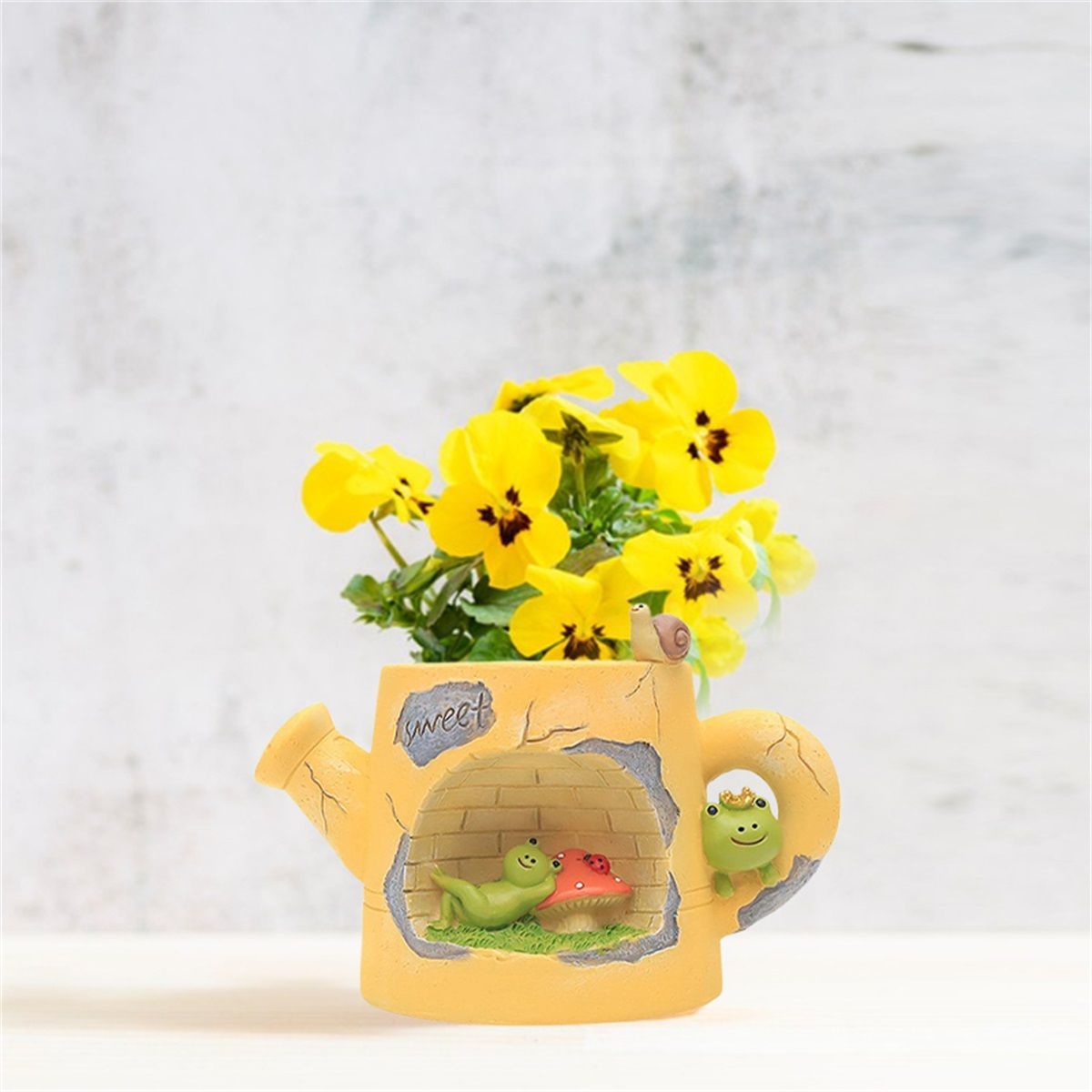 鉢植え 植木鉢 プランター プラントポット フラワーポット ガーデニング 樹脂 屋内 屋外 インテリア 庭 玄関 じょうろの中にいるカエル うさぎ ウサギ イエロー ブルー 2種類 多肉植物 サボテン オシャレ ギフト プレゼント