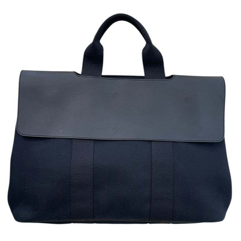 エルメス HERMES ヴァルパライソMM ブラック トワル・レザー メンズ ハンドバッグ