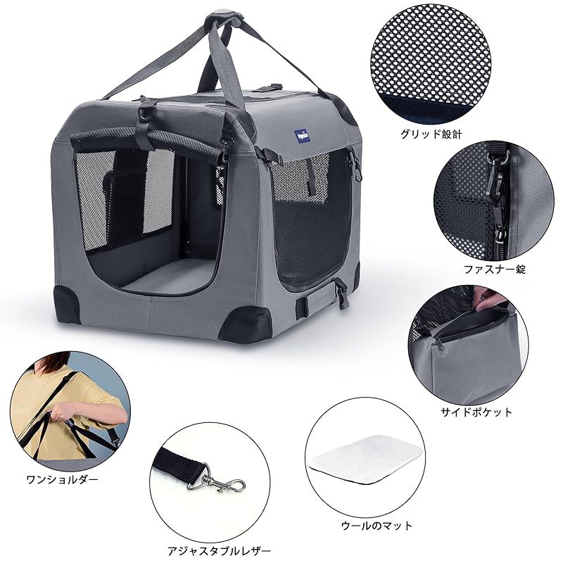 商品名:Petprsco犬用キャリーバッグペットキャリー ソフトクレート中小型犬大型猫4面メッシュ 折りたたみ ペットケージ60x42x42cm省スペース頑丈耐久変形しない 車用 病院 キャンプに 室内外兼用